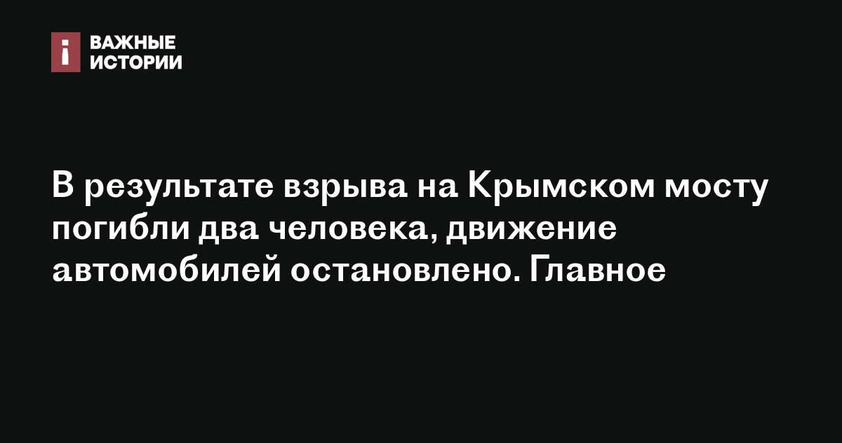 В результате взрыва на Крымском мосту погибли два человека, движение автомобилей остановлено. Главное