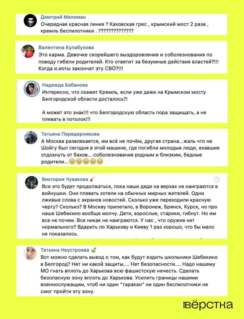 Реакция белгородцев после гибели двух человек на Крымском мосту - Вёрстка