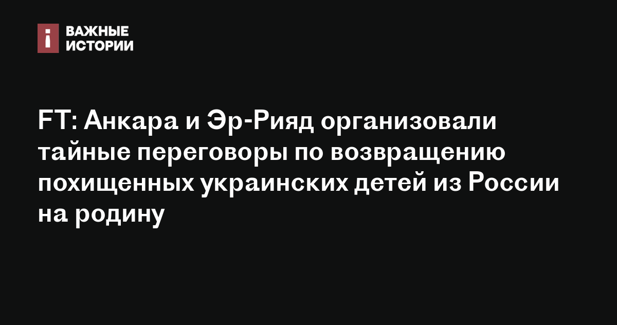 FT: Анкара и Эр-Рияд организовали тайные переговоры по возвращению похищенных украинских детей из России на родину