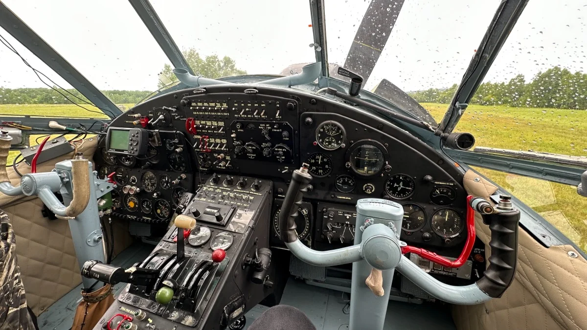 Дождь только закончился, и Ан-2 готов ко взлету. На борту — спортсмены-парашютисты. Фото: Валерия Федоренко / «Новая газета»