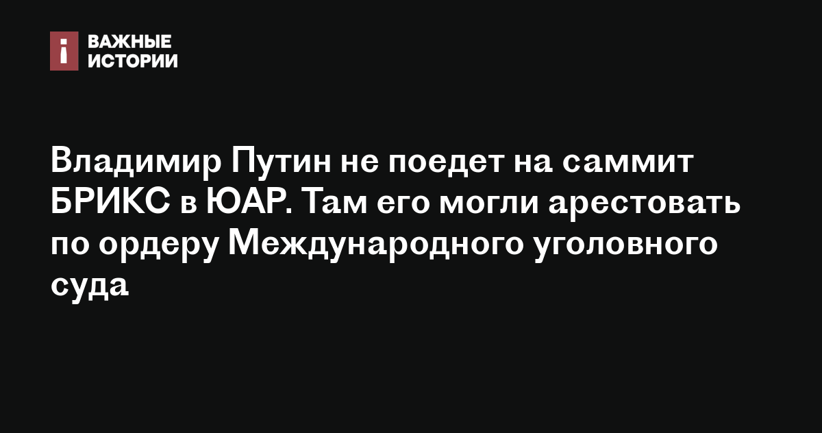 Владимир Путин не поедет на саммит БРИКС в ЮАР. Там его могли арестовать по ордеру Международного уголовного суда