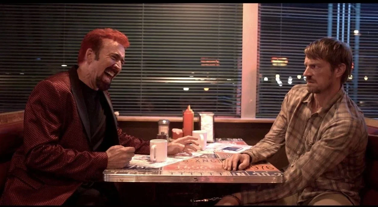 Непостижимым способом на заднем сиденье возникает странный и крайне нервный незнакомец (Николас Кейдж). Вид у него паршивого фрика: рыже-красные волосы, малиновый пиджак, опереточные усы. Бешеный взгляд. Он велит выбрать из колоды карту. Выпадает, ясное дело, пиковый туз — ну точно, добра не жди.