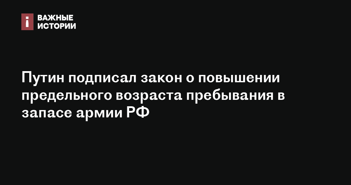 Путин подписал закон о повышении предельного возраста пребывания в запасе армии РФ