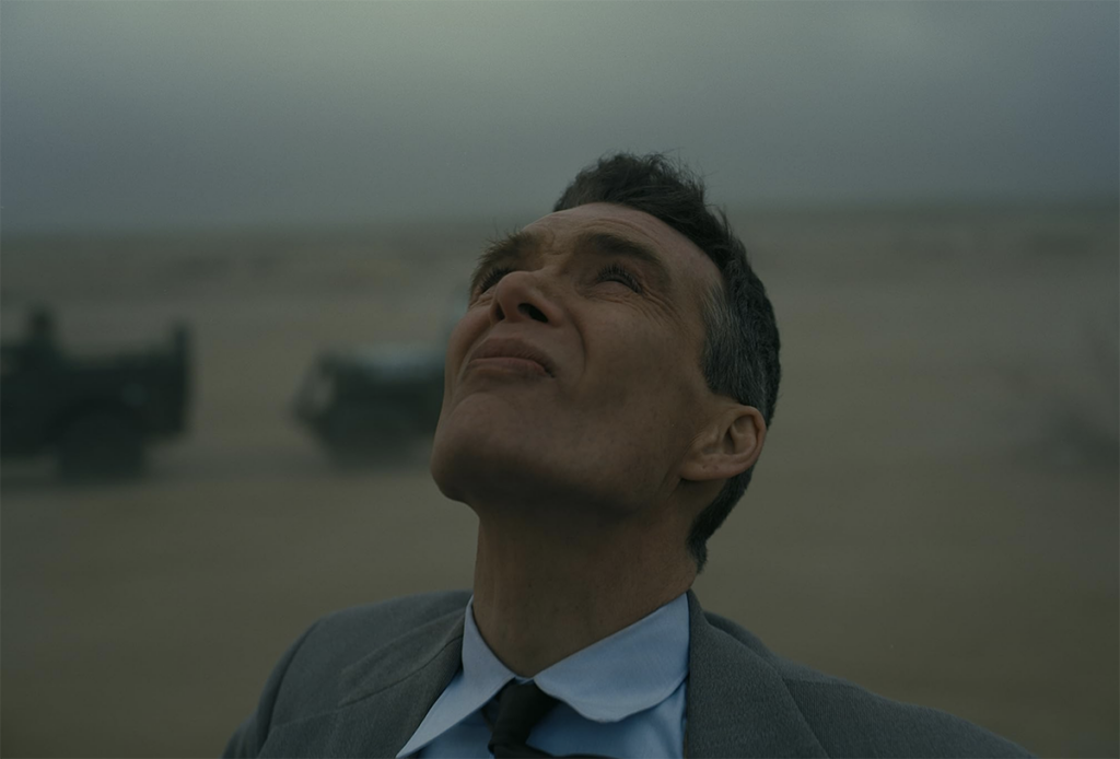 Разумеется, главный страшный «аттракцион», сам Trinity Test, созданный режиссером и выдающимся оператором, оскаровским лауреатом Хойте ван Хойтема практически без компьютерной графики, — это кульминация фильма. Гигантский экран IMAX используется не просто как полотно для живописания самой зрелищной и яркой вспышки смерти из всех возможных, в которой высвобожденная лучистая энергия плавит воздух, сыплет искрами и огненными линиями, разрастается в выросший до циклопических размеров ядерный гриб… Но силовым полем кинематографической энергии оказывается крупный план самого отца бомбы. Прозрачные океанические глаза Киллиана Мерфи, его замерший взгляд, в котором восторг и страх, завораживает. Похоже на магический сеанс связи. Словно герой в этот момент вспоминает пророческие слова своего любимого Бхагавадгиты «Я — смерть, разрушитель миров».