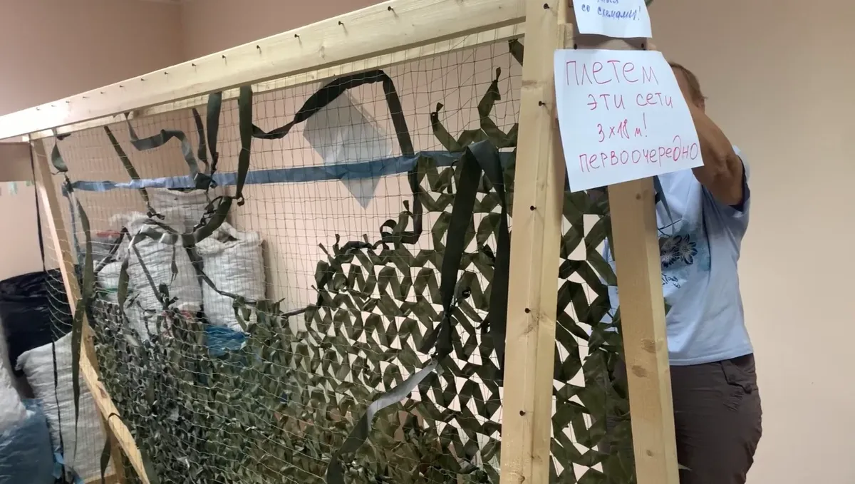 В апреле прошлого года в Горячем Ключе появилось волонтерское сообщество «Голубка», члены которого еще называют себя тыловым батальоном. Они плетут маскировочные сети и шьют одежду для российских военных и бойцов ЧВК, делают носилки, готовят еду — когда есть оказия отправить ее с гуманитаркой.