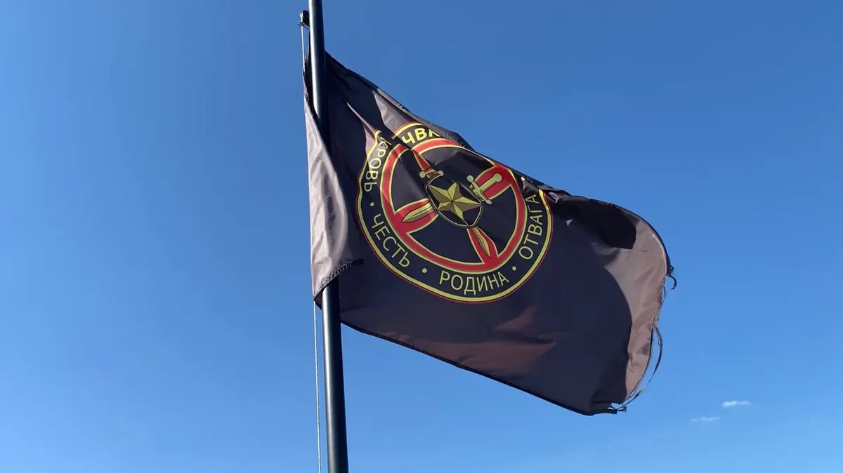 Флаг Вагнера в станице Бакинской. Фото: Иван Жилин / «Новая»