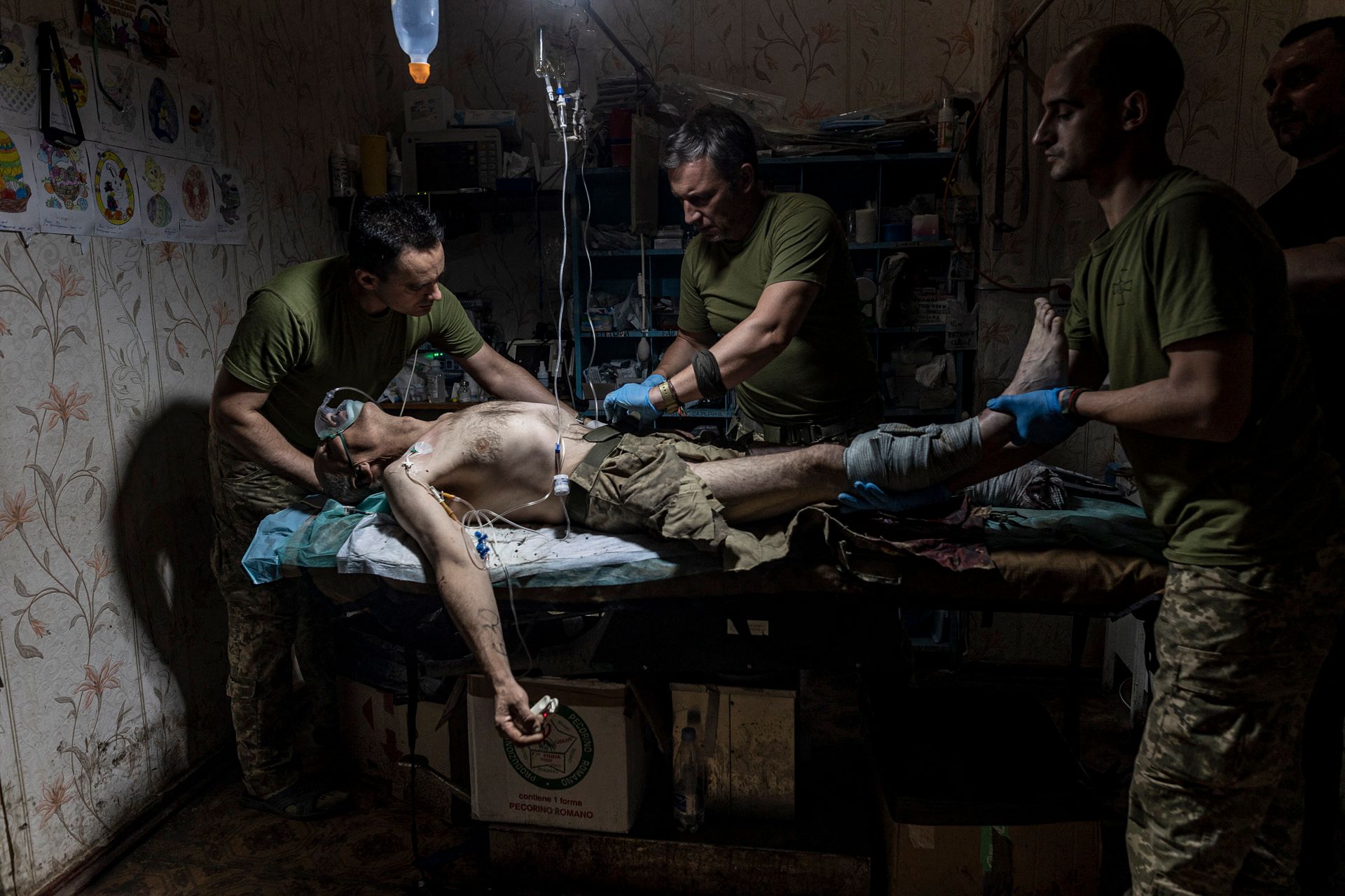 Kateryna Klochko / AP / Scanpix / LETA Доктора лечат украинского солдата ночью в Запорожской области