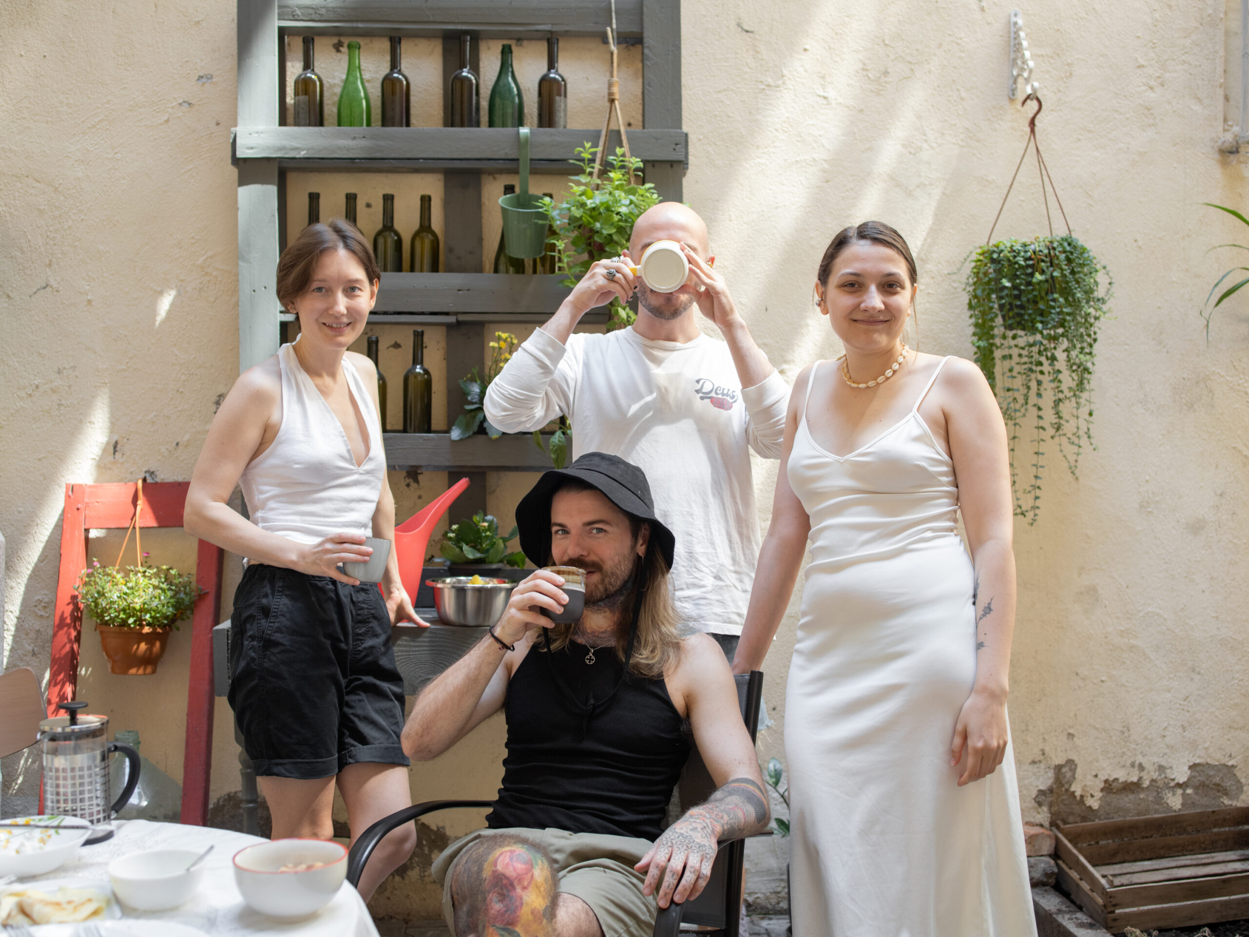 Иван Шитьков живет в Тбилиси с сентября 2022 года. В мае он переехал в Сололаки, где вместе с соседками благоустроил внутренний дворик, куда выходит его квартира, — теперь там расставлены цветы, стоят бутылки из-под вин и висит гирлянда из флажков . За столом во дворе жильцы проводят завтраки, встречи с друзьями и отмечают дни рождения.