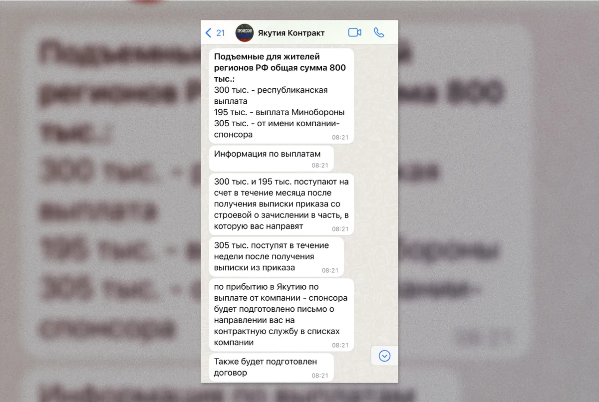 Наемникам готовы платить всё больше. Например, в Якутии уже предлагают подъемные в 800 тыс. рублей: 300 тыс. — от компании-спонсора, 300 тыс. — от региона и 200 тыс. от Минобороны.