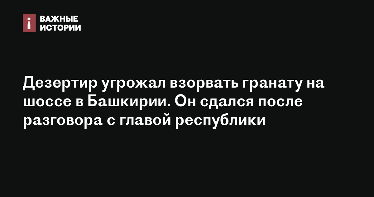 Дезертир угрожал взорвать гранату на шоссе в Башкирии. Он сдался после разговора с главой республики