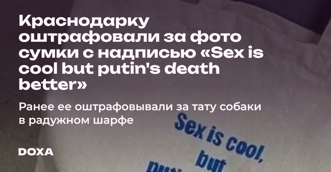 Краснодарку оштрафовали за фото сумки с надписью «Sex is cool but putin's death better»