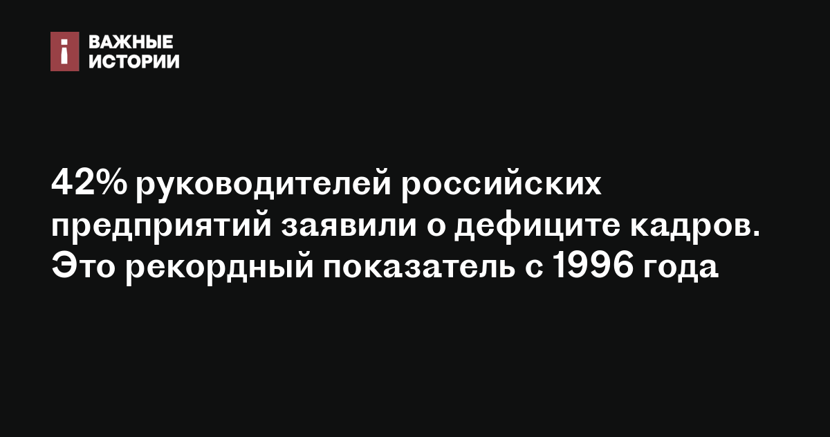 42% руководителей российских предприятий заявили о дефиците кадров. Это рекордный показатель с 1996 года
