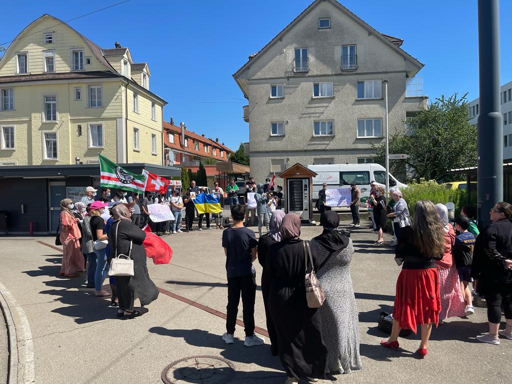 Организатор митинга – представитель правозащитной организации "Европейский дом мира" Лачин Мамишов – рассказал сайту Кавказ.Реалии, что в акции приняли участие около 60 человек. Они держали флаги Ичкерии, Украины, Швейцарии и рукописный плакат на немецком языке со словами: "50 дней голодовки Али Батаева в тюрьме". По итогам митинга принята резолюция, а в органы власти Швейцарии направили открытое обращение.