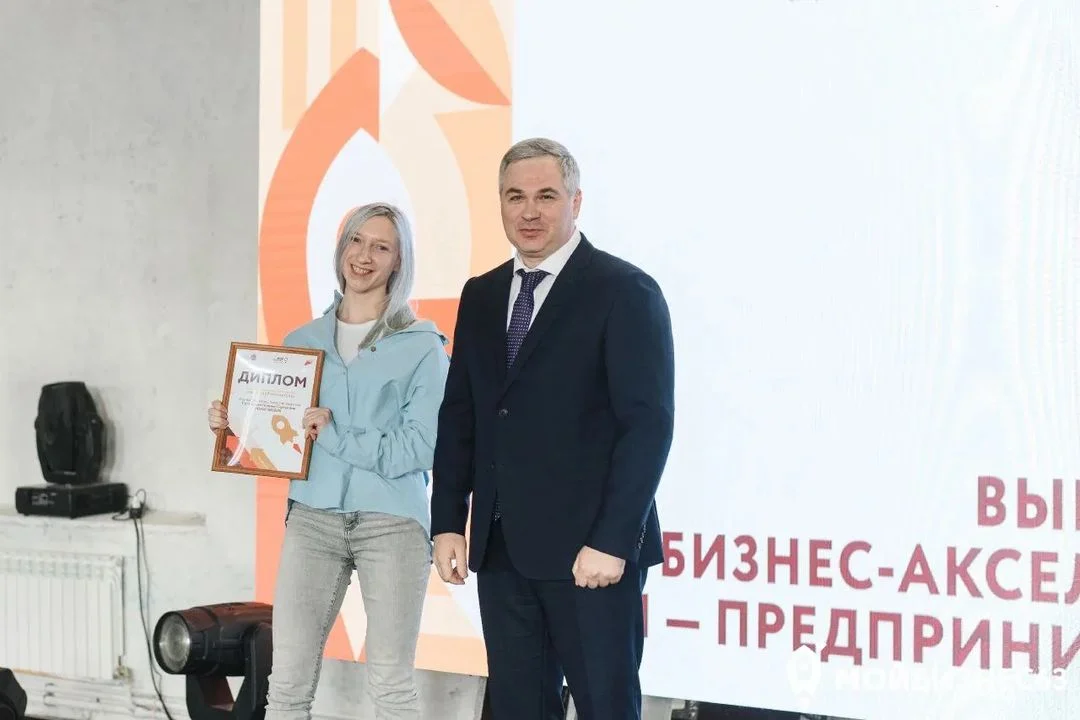 Полина Евтушенко с министром экономического развития Самарской области Дмитрием Богдановым. Фото: сообщество Мой Бизнес 63