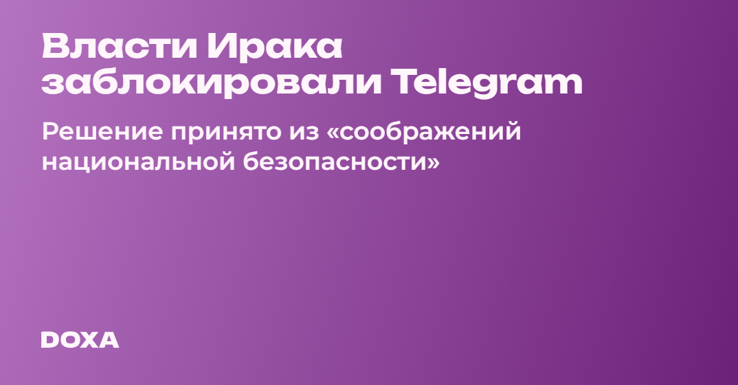 Власти Ирака заблокировали Telegram на территории страны. Решение о блокировке мессенджера было принято в соответствии с вопросами «национальной безопасности и защиты персональных данных граждан».