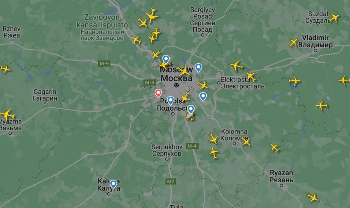 Flightradar24 показывал, что в небе над Внуково ни одного самолета. Согласно онлайн-табло аэропорта, 21 рейс во Внуково задерживался, два были отменены.