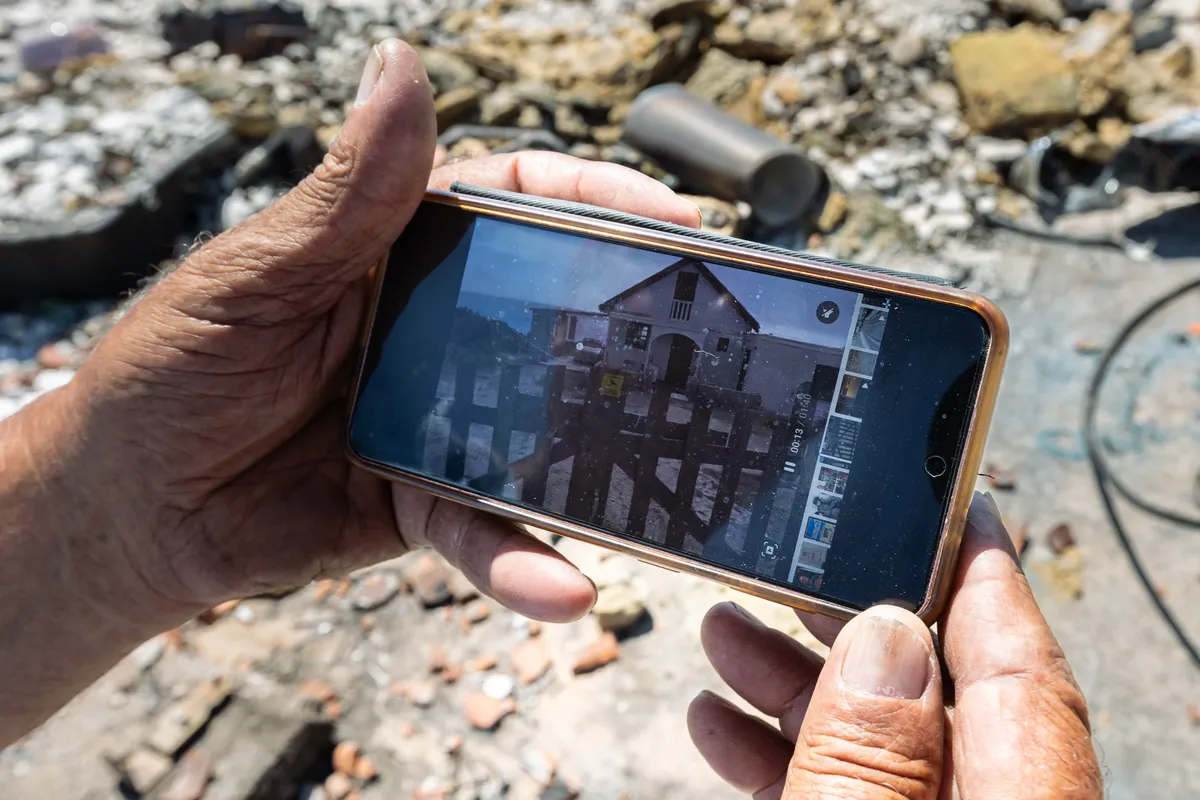Я не был уверен, [что горит мой дом]. Когда я подъехал, увидел, что дело плохо. Я был расстроен.И я не мог понять, почему они не могут остановить пожар. Этот дом я построил сам. Ни электрика, ни сантехника, ни строителя, я всё делал сам. Жилая площадь была 140 или 160 квадратных метров. Вот такой он был.