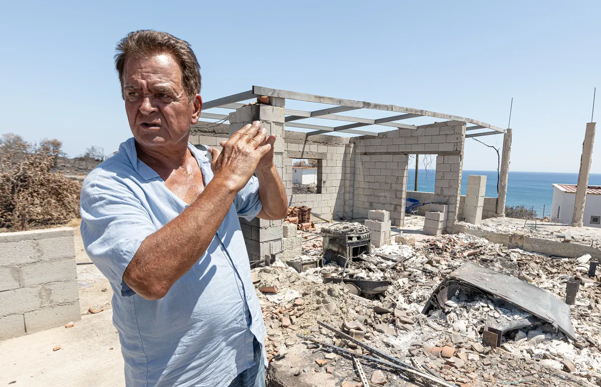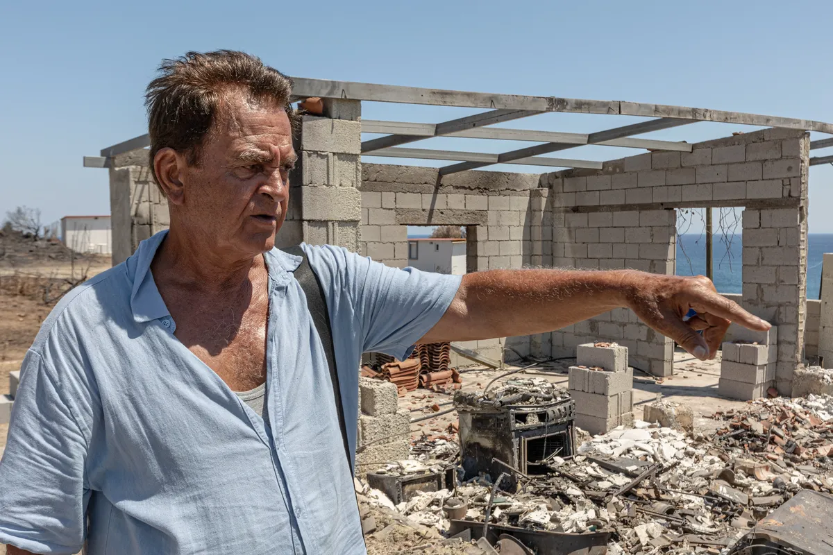 В конце июля на греческом острове Родос начались лесные пожары. Их причиной стала сильная жара и засуха. В некоторых регионах страны температура поднималась до 45 градусов по Цельсию. Почти 10% территории острова было охвачено огнем. По последним данным, 3 человек погибли. Власти эвакуировали почти 20 тысяч человек. «Новая газета Европа» публикует историю местного жителя, чей дом сгорел во время пожара, и показываем последствия катастрофы.