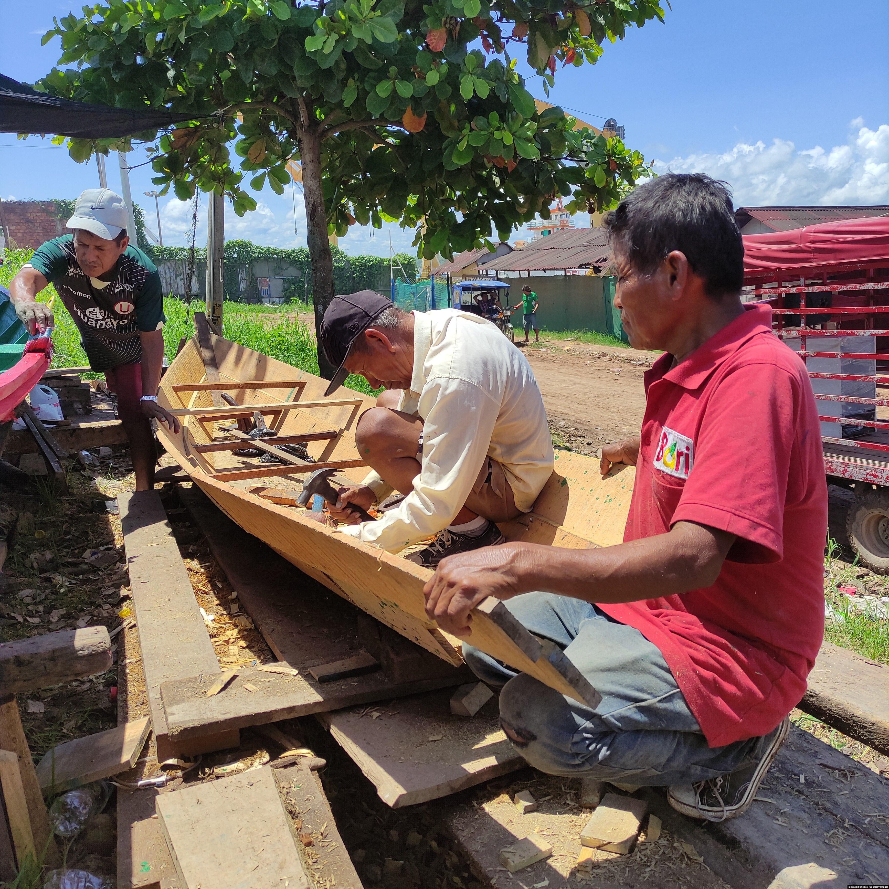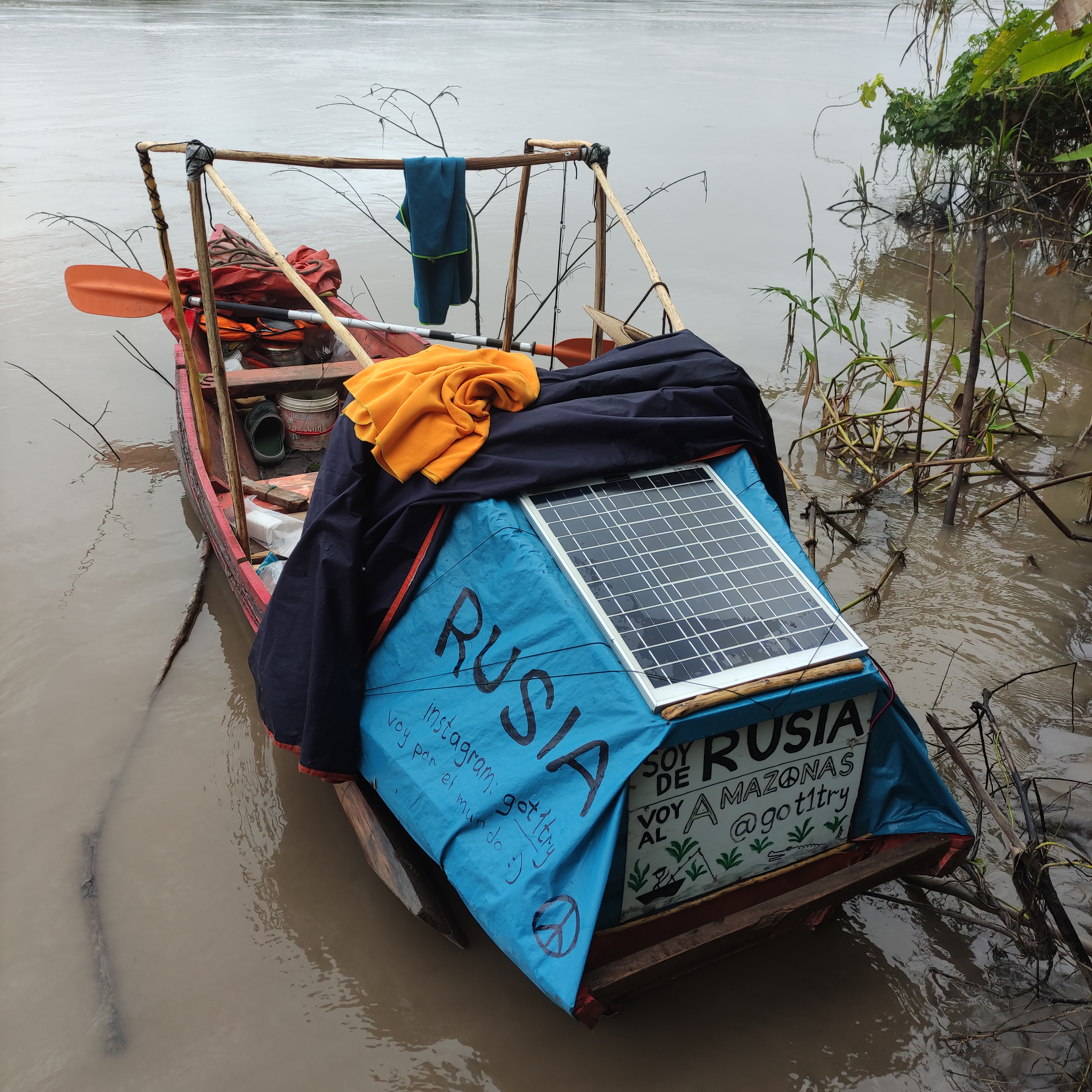 Михаил планировал плыть на пакрафте – легкой надувной лодке, которую привез с собой. Но на месте оказалось, что такая лодка быстро пойдет ко дну, потому что по Амазонке несет множество огромных бревен. Тогда он нашел в порту перуанского города Пукальпа строителей и попросил помочь ему построить лодку. Через три дня у него было 4-метровое каноэ.