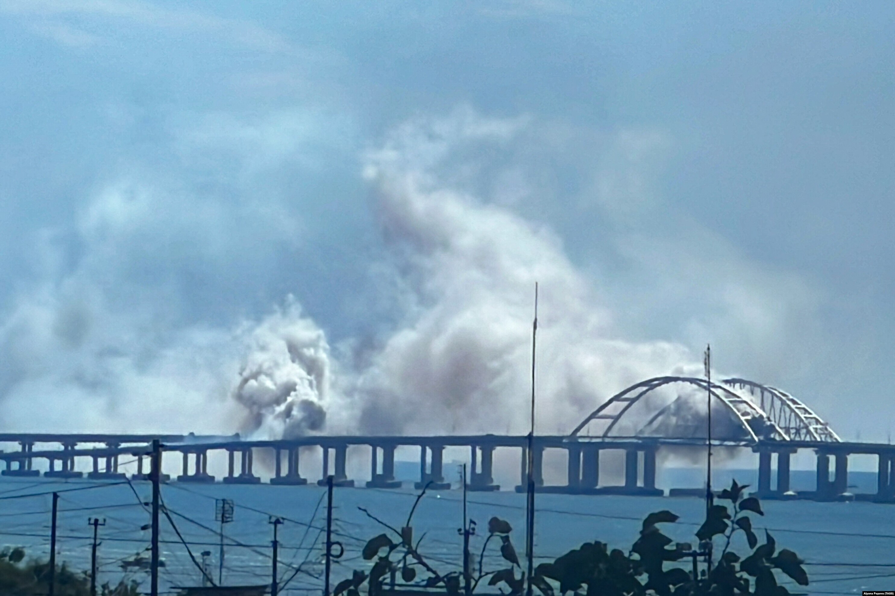 После сообщений о взрывах очевидцы снимали видео с задымлениями в районе моста. Российские власти утверждают, что это была дымовая завеса.