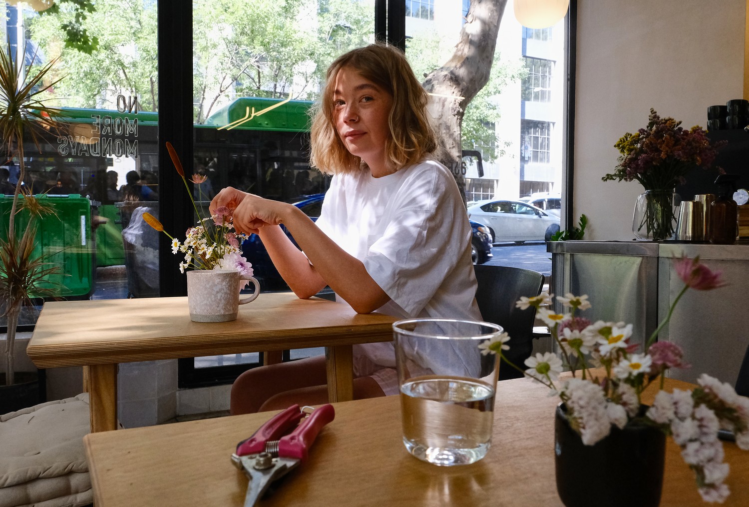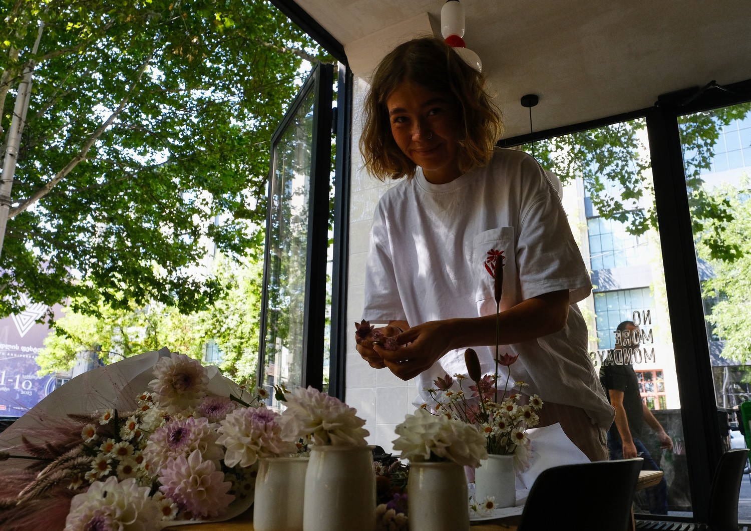 Мне было бы интересно продвигать подписку не только для дома, но и для местного бизнеса — кофеен, офисов и так далее. Например, не так давно я обнаружила кофейню No More Mondays. Здесь очень уютно, работают милые ребята, удобные стулья и вкусный кофе. Я решила подарить ребятам цветы: в Грузии я часто вижу цветы в кофейнях на столах — по-моему, это идеальный мэтч.