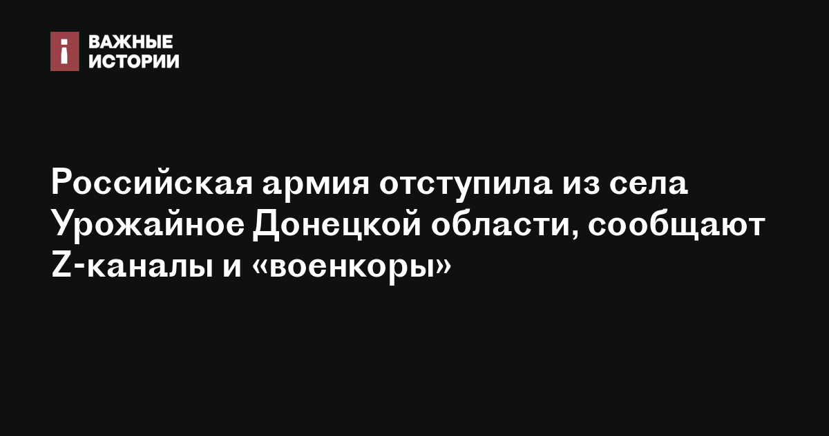 Российская армия отступила из села Урожайное Донецкой области, сообщают Z-каналы и «военкоры»