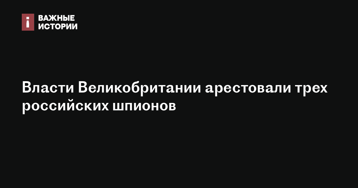 Правоохранительные органы Великобритании задержали трех человек, которых подозревают в шпионаже в пользу российских спецслужб. Об этом сообщает BBC News.