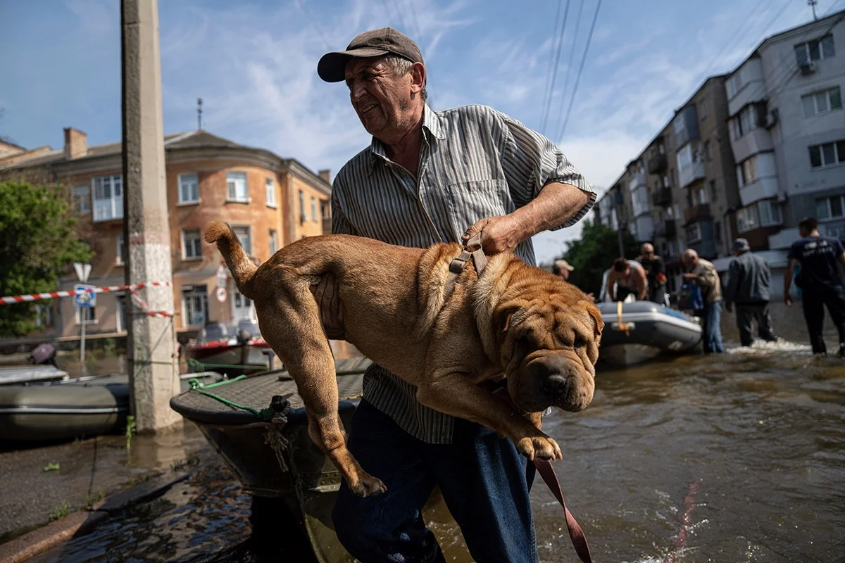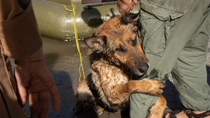 Собака, спасенная после разрушения на Каховской ГЭС. Фото: Даниил Павлов