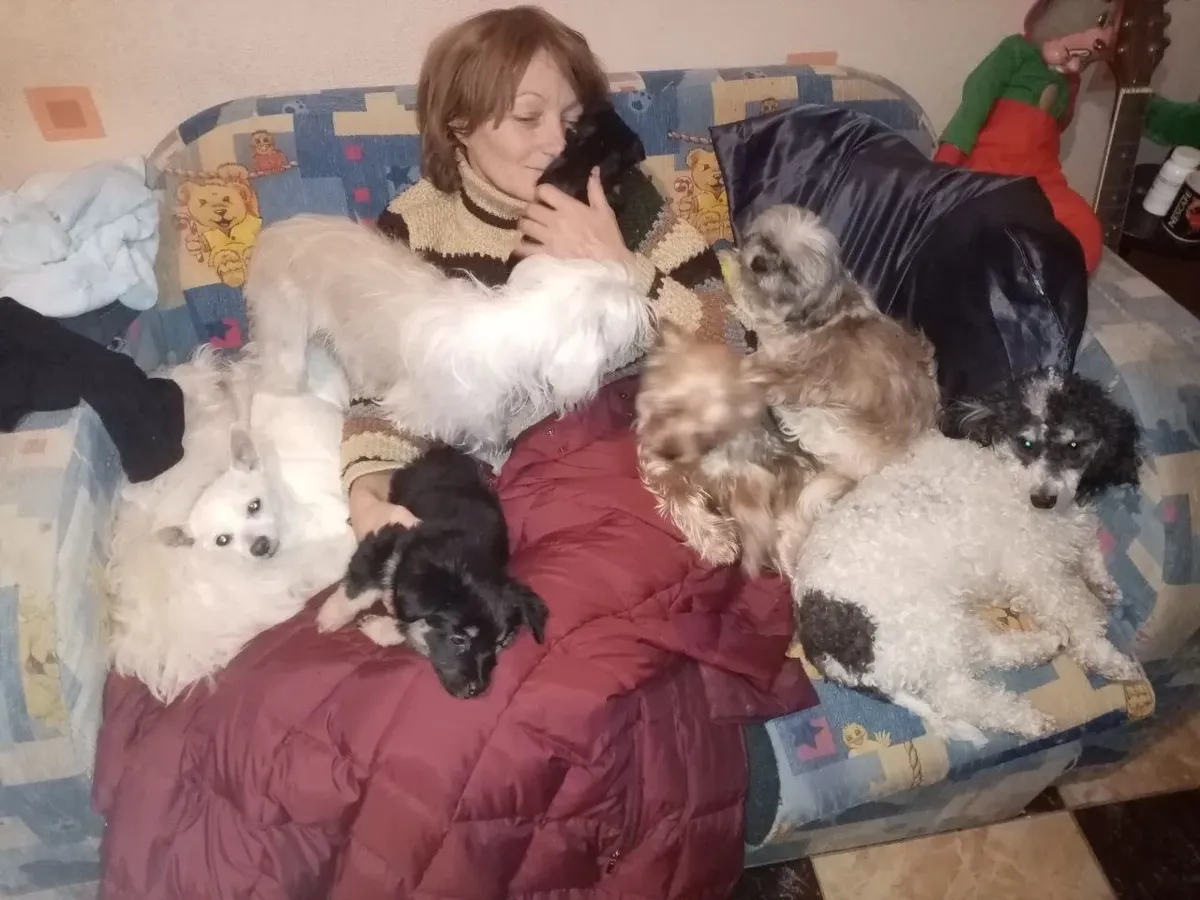 У нас тогда уже было десять собак и пять кошек. Четыре наших собаки — Чарлик, Мальвина, Джанетта и Ася. Йорк, слепая ши-тцушка, китайская хохлатая и инвалид чихуахуа, его машина сбила, а мы выходили. И щенок был — Пуха, наша красавица.