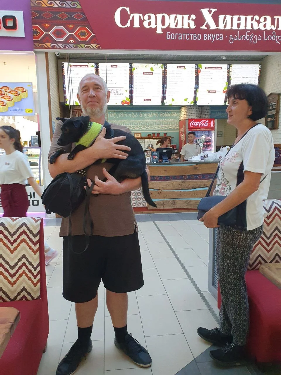 И вот 12 июля Нина нас вывезла. Наши четыре собаки и четыре кошки, а в машине у нее уже были две взрослые собаки, два щенка, кот и котенок. Причем наши-то собаки никогда соседских мальчиков раньше не видели, они в ошейниках никогда не ходили и на поводках. Бегали по закрытым дворам. Пришлось купить ошейники, надеть на них. Потом свести наших двух с теми двоими, чтобы попривыкли друг к другу. Потом учили их на поводках ходить. Некоторое количество денег у нас еще оставалось, я пошел на рынок и купил переноски для кошек. Их там было всего четыре — я все четыре и взял.