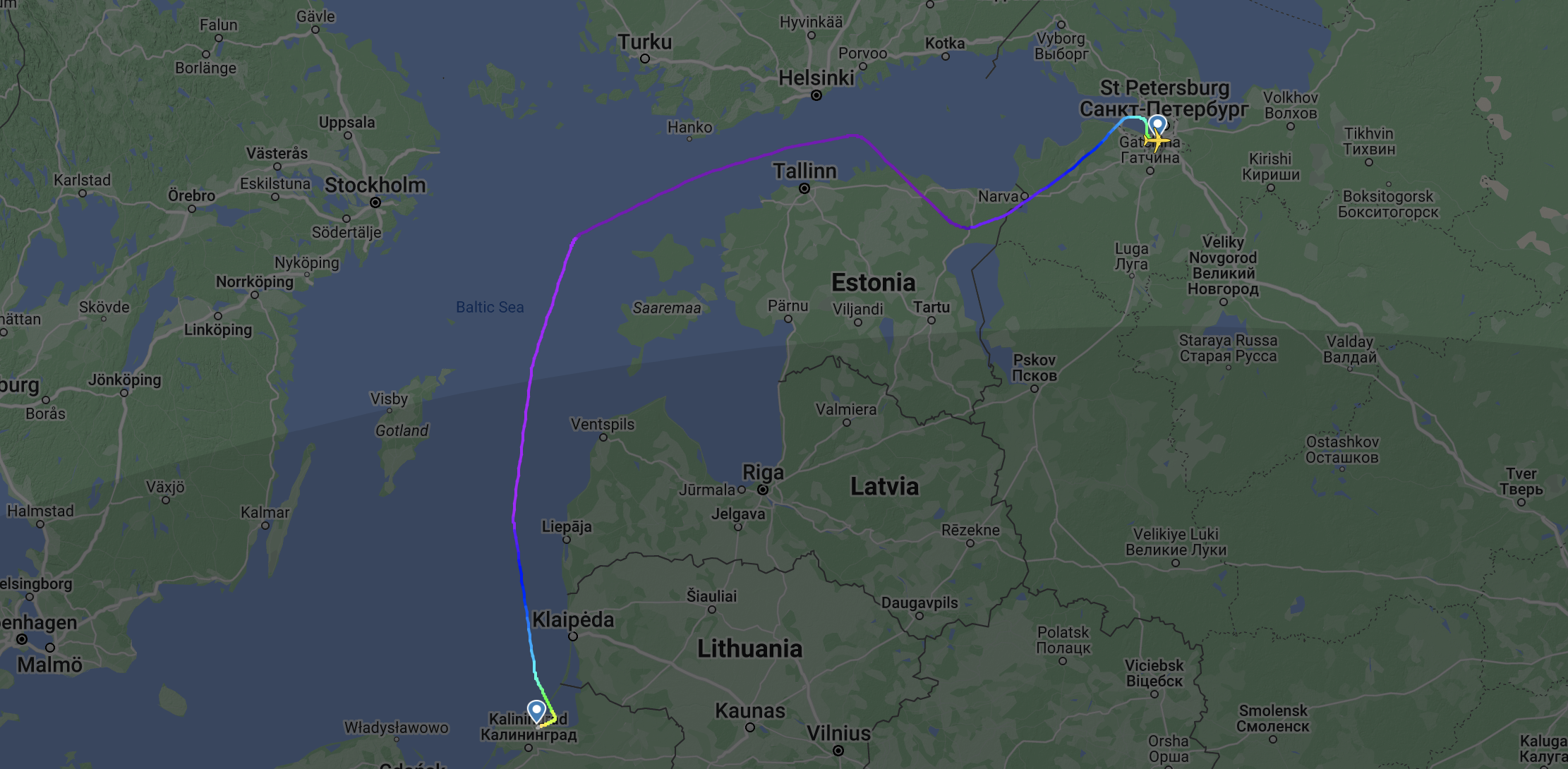 В феврале 2022 года, в первые дни войны в Украине, страны Евросоюза, а также Великобритании, США и другие, закрыли свое воздушное пространство для самолетов российских авиакомпаний. В результате маршруты до Калининграда прокладывали в облет.