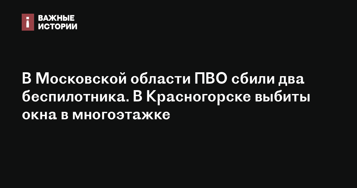 В Московской области ПВО сбили два беспилотника. В Красногорске выбиты окна в многоэтажке
