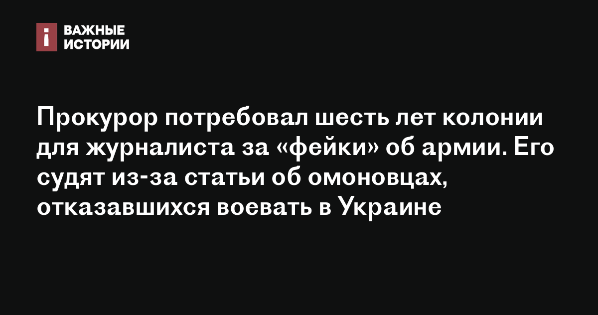 Прокурор потребовал шесть лет колонии для журналиста за «фейки» об армии. Его судят из-за статьи об омоновцах, отказавшихся воевать в Украине