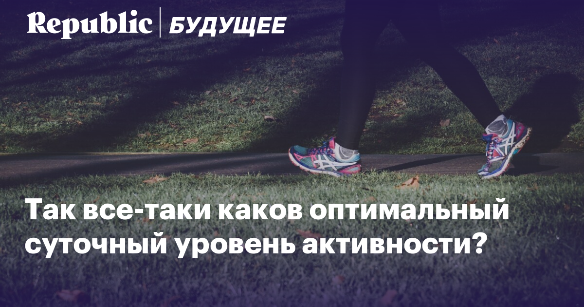 Однако до сих пор было не вполне понятно, каков оптимальный суточный уровень активности. Как считают в ВОЗ, взрослым в возрасте 18–64 лет нужно уделять аэробной физической активности умеренной интенсивности не менее 150–300 минут в неделю. Но научно обоснованных данных на этот счет достаточно мало, а существующие — весьма противоречивы.