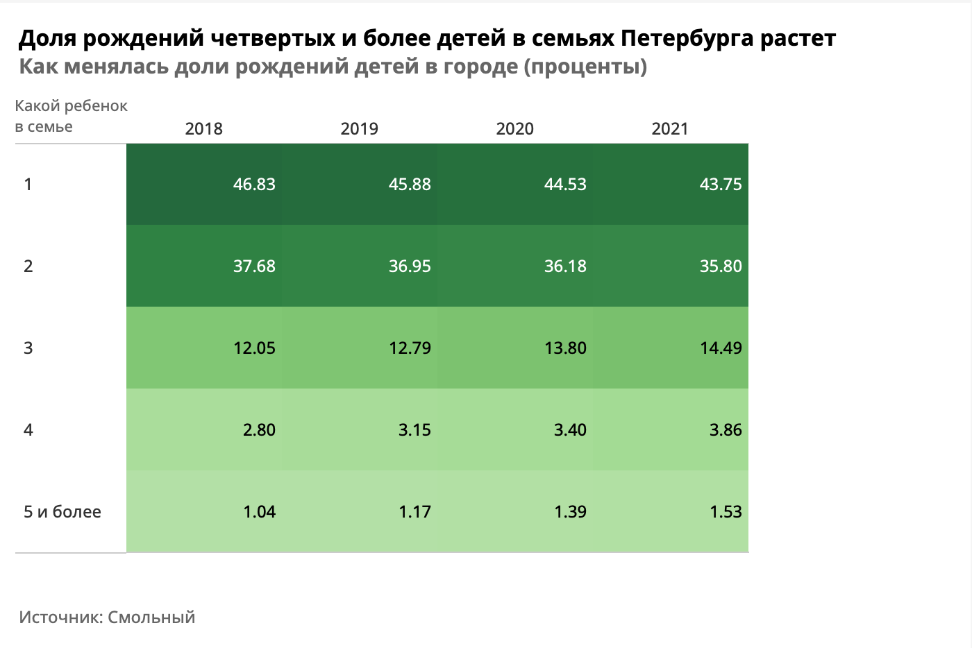 В Смольном падение рождаемости объяснили «демографической ямой» 1990-х годов и увеличением возраста рождения первого ребенка. Другие причины, по версии чиновников, — это рост доли женщин, вступающих в брак после 25 лет и откладывание рождений из-за пандемии коронавируса и «санкционного давления со стороны недружественных стран».