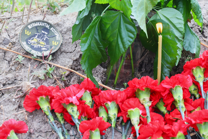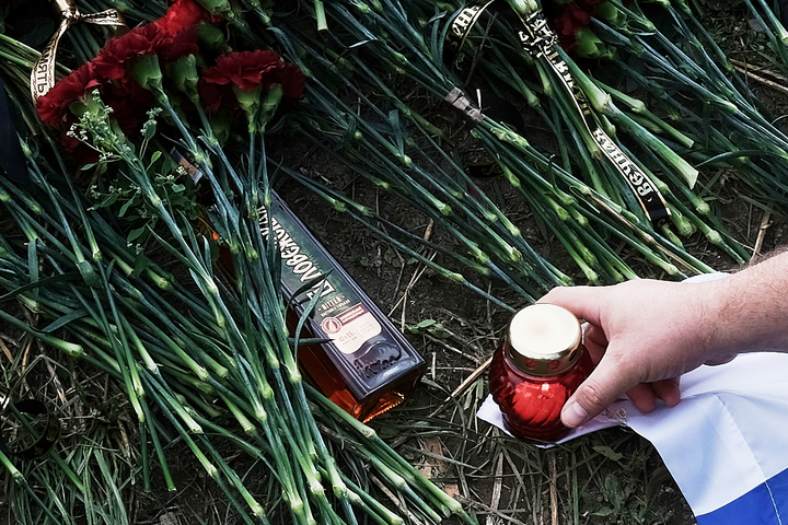 Женщины с детьми, подростки, мужчины в военной форме с нашивками «Z» несли цветы и фирменные флаги наемников. Останавливаясь у кургана, они крестились и быстро уходили.
