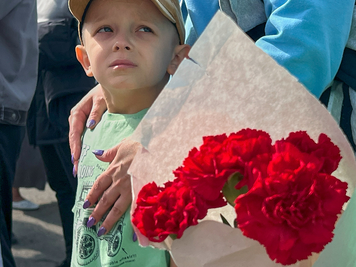 — Приучаем детей уважать, — вскользь бросила журналистам женщина, держа за руки двух рыжеволосых мальчиков-близнецов.