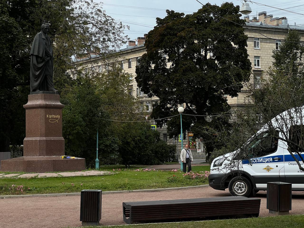Петербуржцы также несут цветы к памятнику Тарасу Шевченко на площади имени Шевченко.
