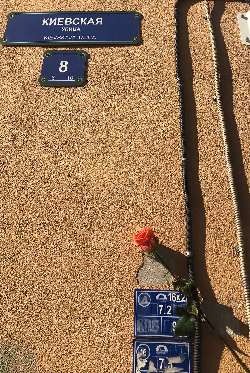 На Киевской улице неизвестный оставил розу, закрепив ее в пластмассовом обухе для провода.