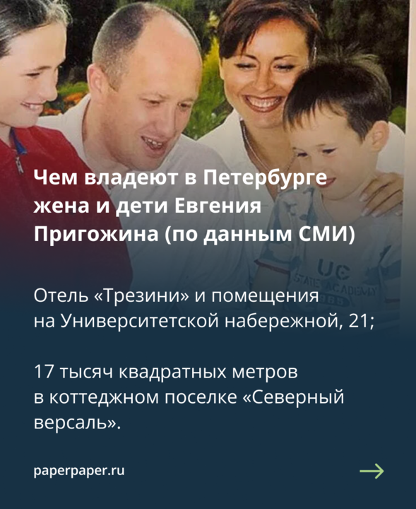 «Бумага» собрала список активов, которые на конец августа 2023 года находятся в распоряжении ближайших родственников Евгения Пригожина.