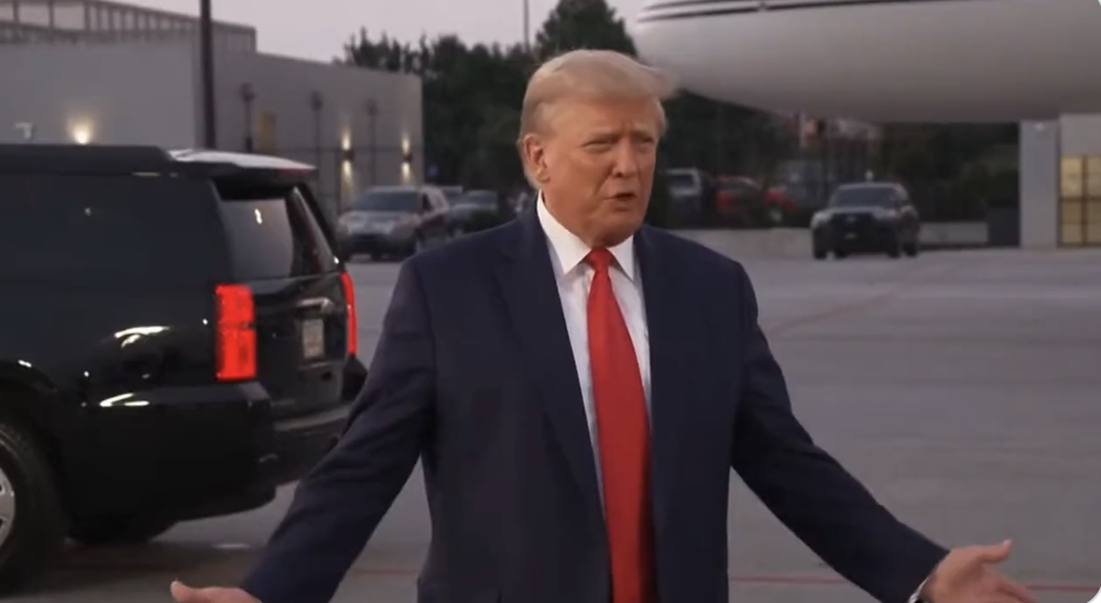 Через 20 минут после прилета он вернулся в аэропорт, где сделал несколько заявлений для прессы, настаивая на том, что он не совершил ничего незаконного, назвав обвинения "пародией на правосудие". "Мы имели полное право подвергнуть сомнению результаты выборов, которые мы считаем нечестными", – заявил Дональд Трамп.