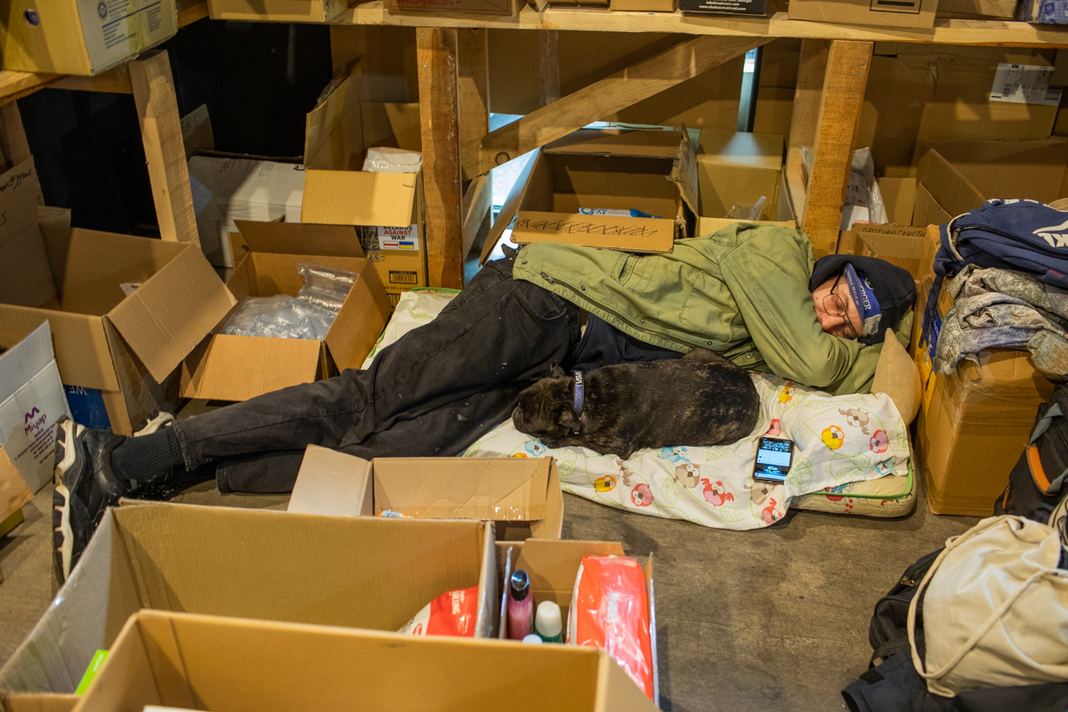 Сейчас я хожу на пункт сильно меньше. Обычно волонтеры не ходят каждый день, выходят посменно. У нас есть расписание, меня в нем нет, но на мне есть задачи. Сейчас вот надо стеллаж продлить в подвале, зимние вещи разобрать, потом оказывается, что что-то не работает, я иду чинить. Я постоянно на связи и читаю чат, в свободное время стараюсь приходить и стыжу себя, если не могу дойти. Но к концу месяца я всегда работаю — надо оплачивать счета. У меня есть собака, она сейчас болеет, почему-то никак не выздоровеет: ей тоже нужно покупать еду, лекарства, возить к ветеринару.