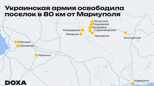 Заместительница министра обороны Украины Анна Маляр подтвердила освобождение села Работино Запорожской области, сообщает Military Media Center. Ранее в сети появлялись кадры, на которых украинские войска входят в село. Теперь ВСУ, как пишет Маляр, продвигаются дальше на юго-восток — по направлению к Мариуполю.