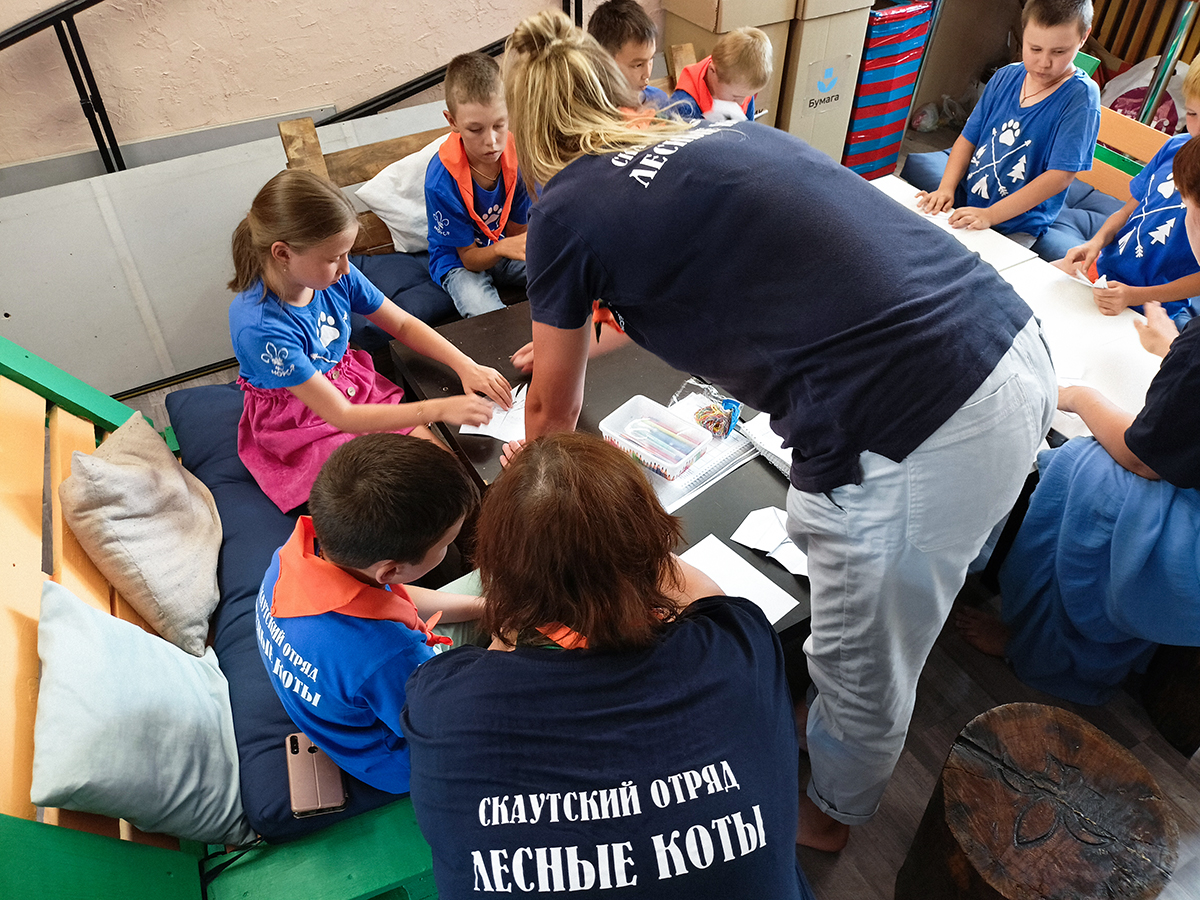 «К вам» — это не только про Диму, но и про Ольгу. В отряд скаутов она пришла как натянутая струна: чуть дотронешься — и уйдет в долгие объяснения, извинения, а то и в слезы. Надо было ее переключить. И Оле доверили рассказывать детям про космос. Потом добавили поделки, рисование, беседы о том, как прошел день.