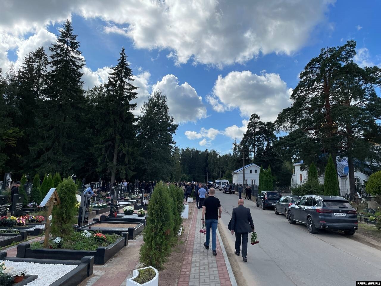 Северное кладбище с утра оцепили росгвардейцы и полицейские, там досматривают все заезжающие машины. К кладбищу приходят десятки людей. По подсчетам корреспондента Север.Реалии, сейчас там собралось около 100 человек.