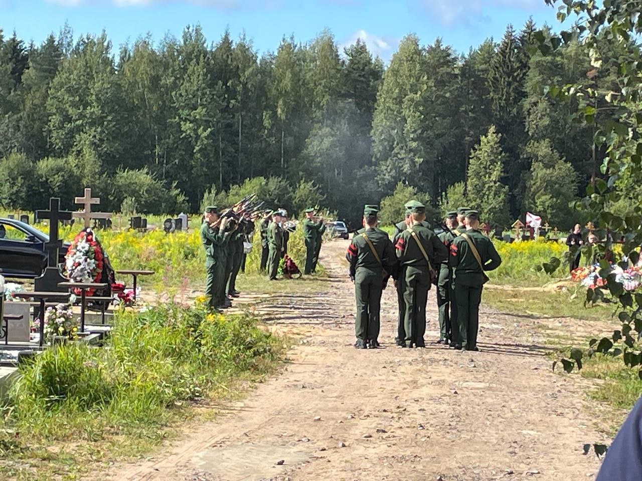 На кладбище не слышно ни залпов военного салюта, ни оркестра, передает "Фонтанка".