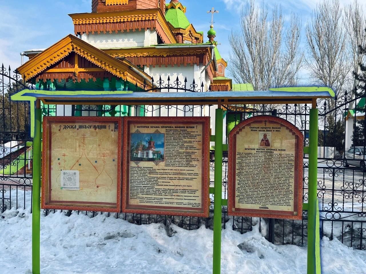 Доска с информацией перед храмом во имя Пророка Божия Илии