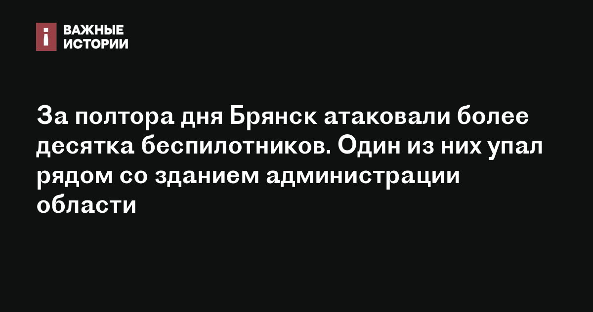 За полтора дня Брянск атаковали более десятка беспилотников. Один из них упал рядом со зданием администрации области