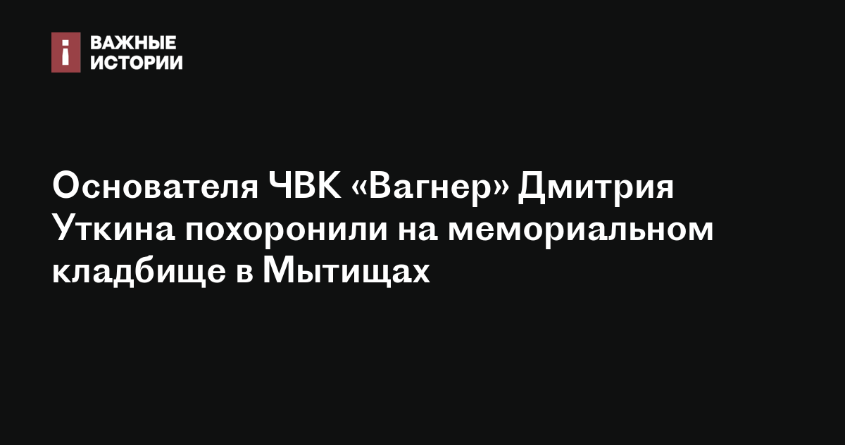 Основатель ЧВК «Вагнер» Дмитрий Уткин похоронен на мемориальном военном кладбище в подмосковных Мытищах. Об этом изданию MSK1.Ru сообщил замдиректора кладбища. Телеграм-канал ВЧК-ОГПУ пишет, что родственники Уткина покинули кладбище. Других желающих попрощаться с погибшим охрана кладбища обещала пропустить «по жетонам».