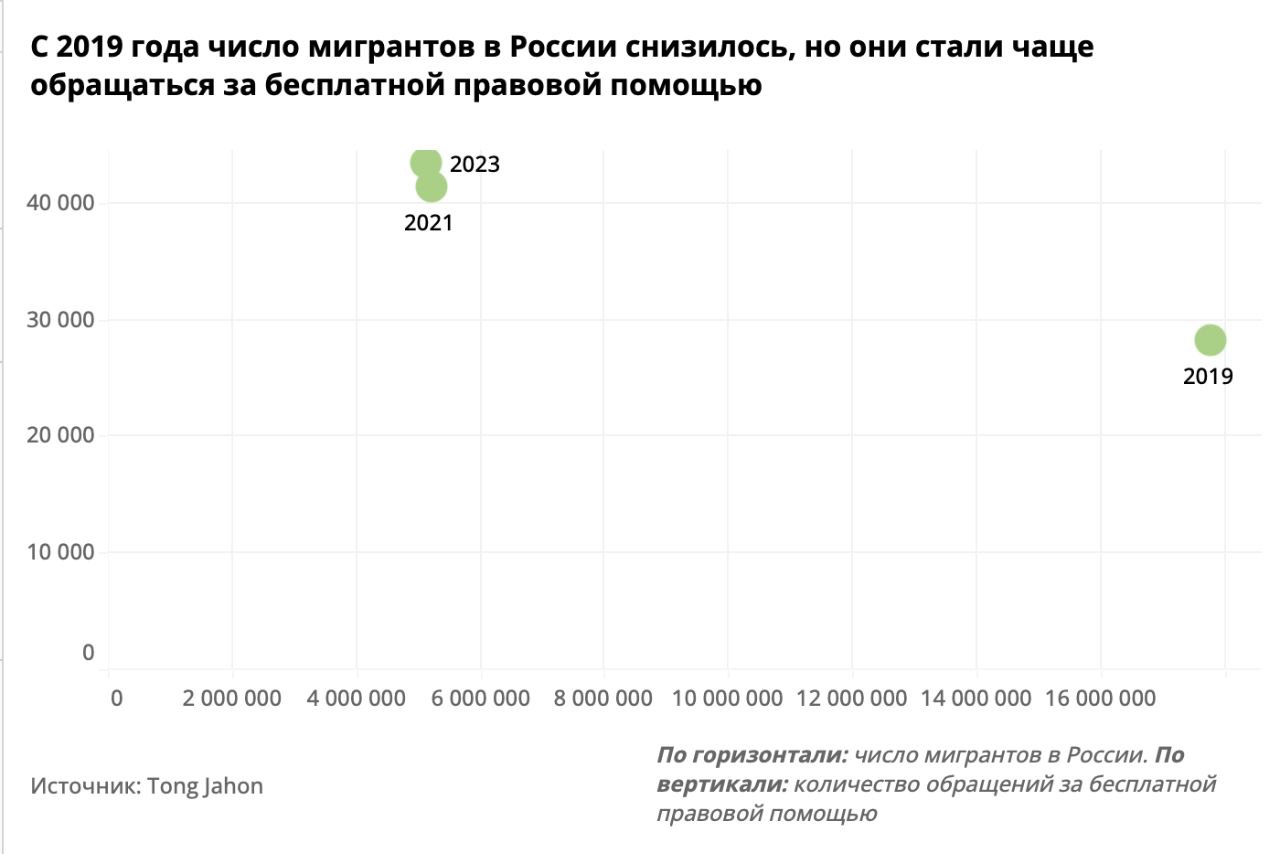 Правозащитница Валентина Чупик рассказала «Бумаге», что, если судить по статистике обращений, с 2019 года количество задержаний действительно выросло вдвое относительно общего числа мигрантов, и почти в два с половиной раза выросло число фактов насилия.